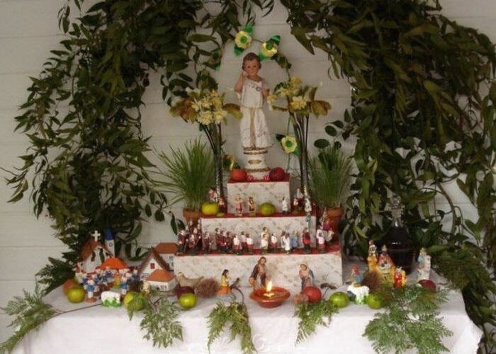 The Lapinha is a cherished Christmas tradition unique to Madeira, representing a miniature altar or nativity scene. Typically arranged as a small three-tiered staircase, it is placed on a table or dresser draped with a red cloth and topped with a delicate white lace cloth.
