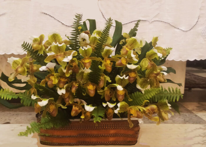 Known as the Christmas orchid in Madeira as the elegant Sapatinho (Slipper Orchid) it enchants with its unique, exotic flower shape and lush foliage. S – 1 plant | M – 2 plants | L – 3 plants .